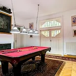 A fully equipped kitchen with an oven and glassware is provided in the property, along with coffee and tea making equipment. Budapest Ferenc Liszt International airport is located 40 km away while Rakospalota-Ujpest vasutallomas bus station is 650 metres from the 300 m^2 apartment. The apartment boasts access to a swimming pool and a pool table, as well as a terrace with views of the garden. Also, hiking, cycling, and darts can be organised in the area.